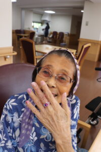 職員がご入居者様の手元に、ネイルを施し、