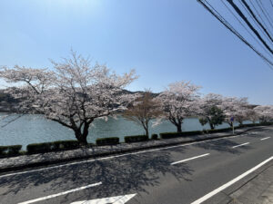 桜と瀬田川、青空のコントラストがとても美しく、